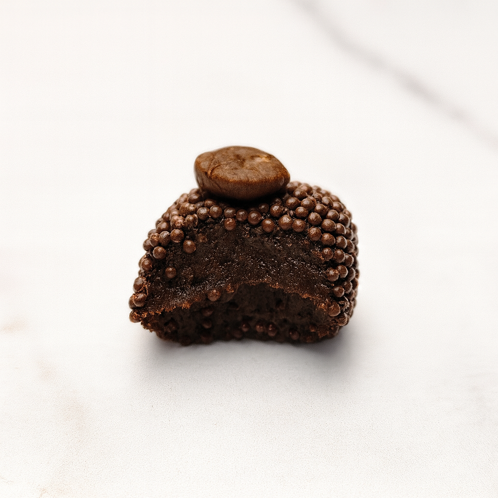 Ingredientes: castanha de caju, açúcar, cacau, chocolate (açúcar, massa de cacau, manteiga de cacau, emulsificante lecitina de soja e aromatizante), café, granulado de chocolate.