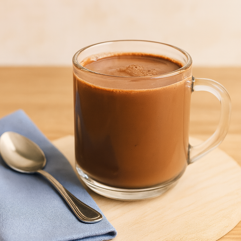 200ml de chocolate quente vegano (creme de leite de aveia, chocolate vegano 50% cacau, açúcar e cacau 100%)