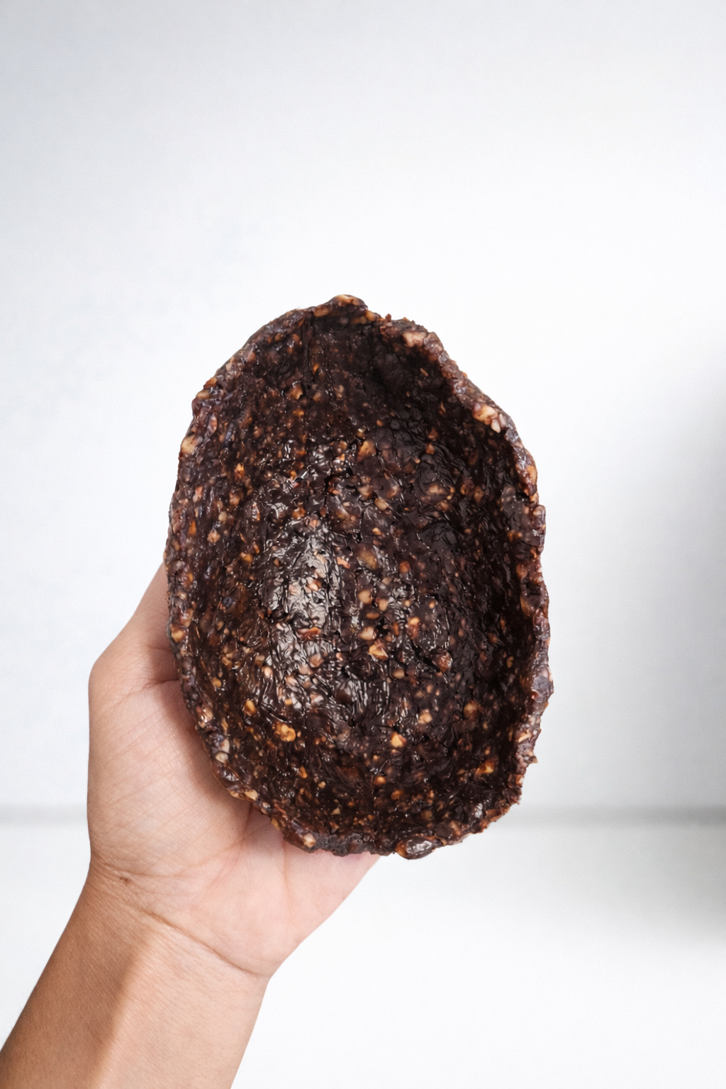 Ingredientes: Castanha-de-caju, tâmara, óleo de coco, cacau em pó e ágar-ágar.